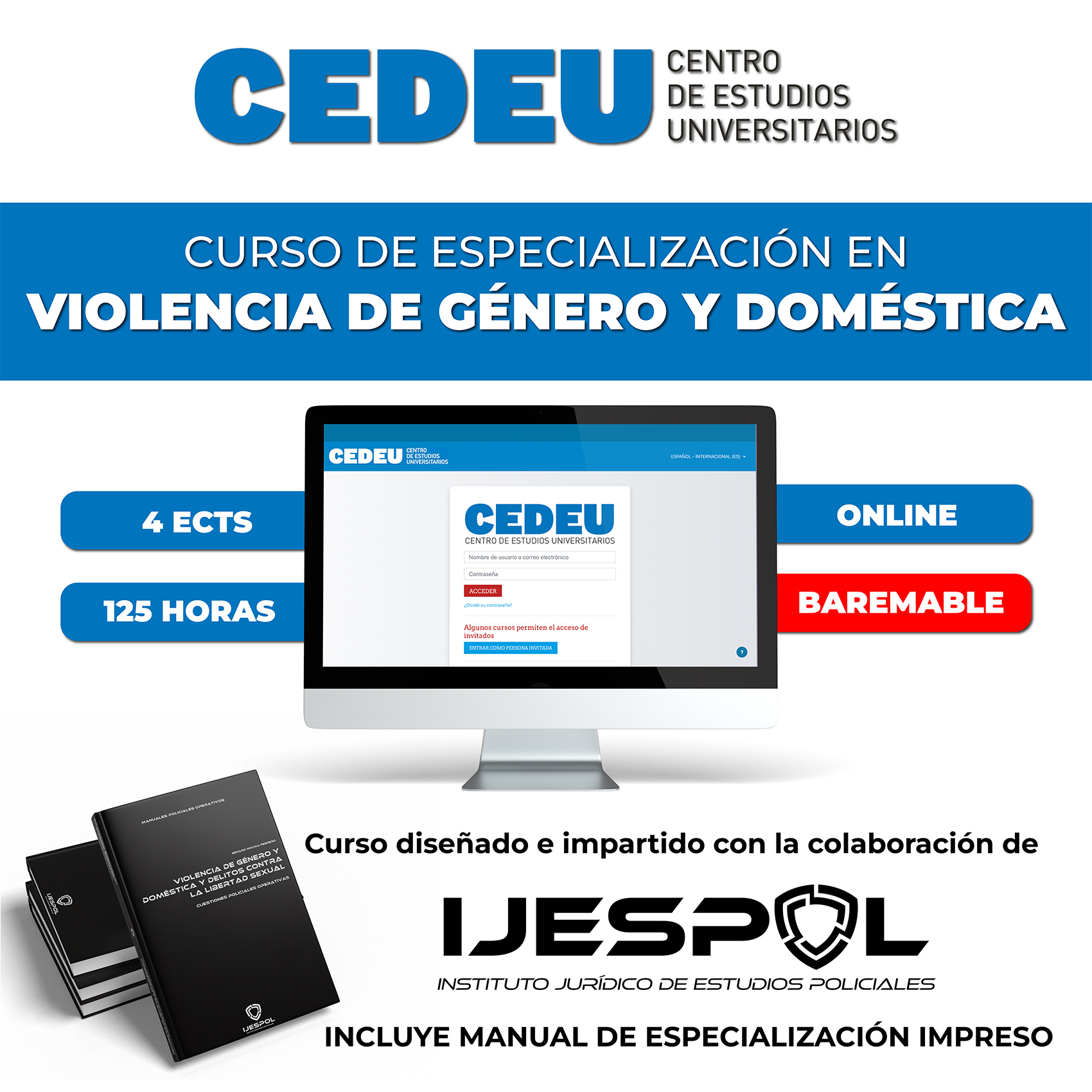 CURSO CEDEU-IJESPOL. CURSO DE ESPECIALIZACIÓN EN VIOLENCIA DE GÉNERO Y DOMÉSTICA (BAREMABLE)